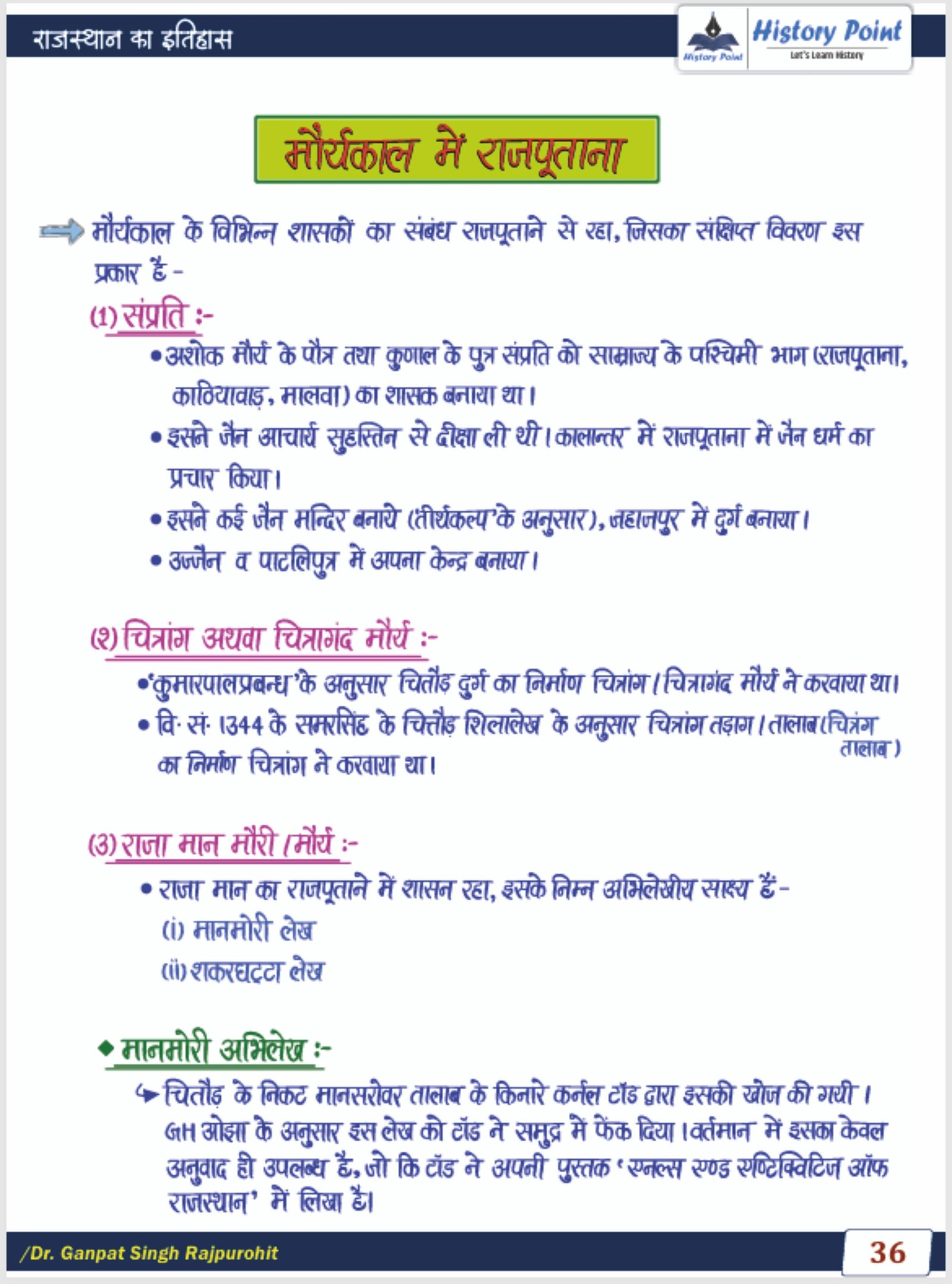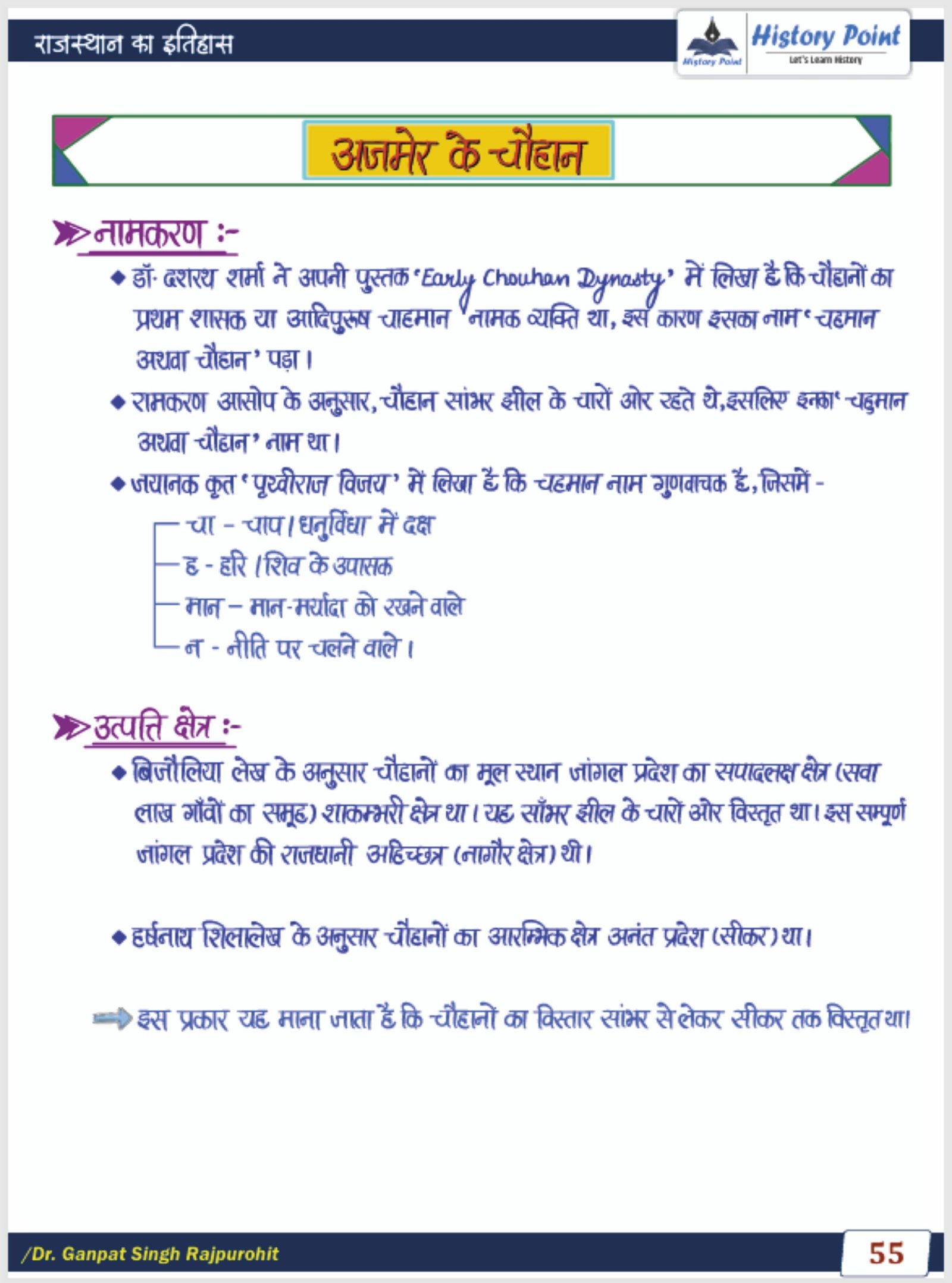 राजस्थान का इतिहास (History of Rajasthan) - Handwritten Notes
