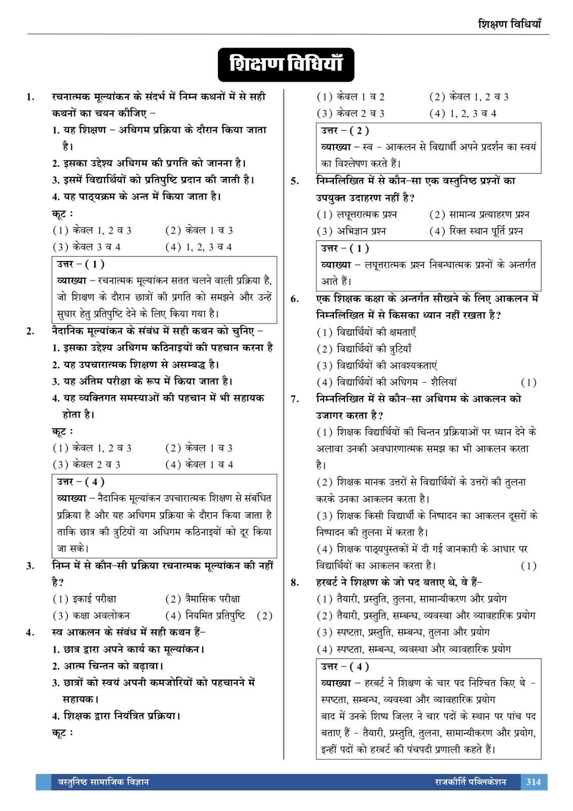 वरिष्ठ अध्यापक : सामाजिक अध्ययन (SST) : MCQ बुकलेट